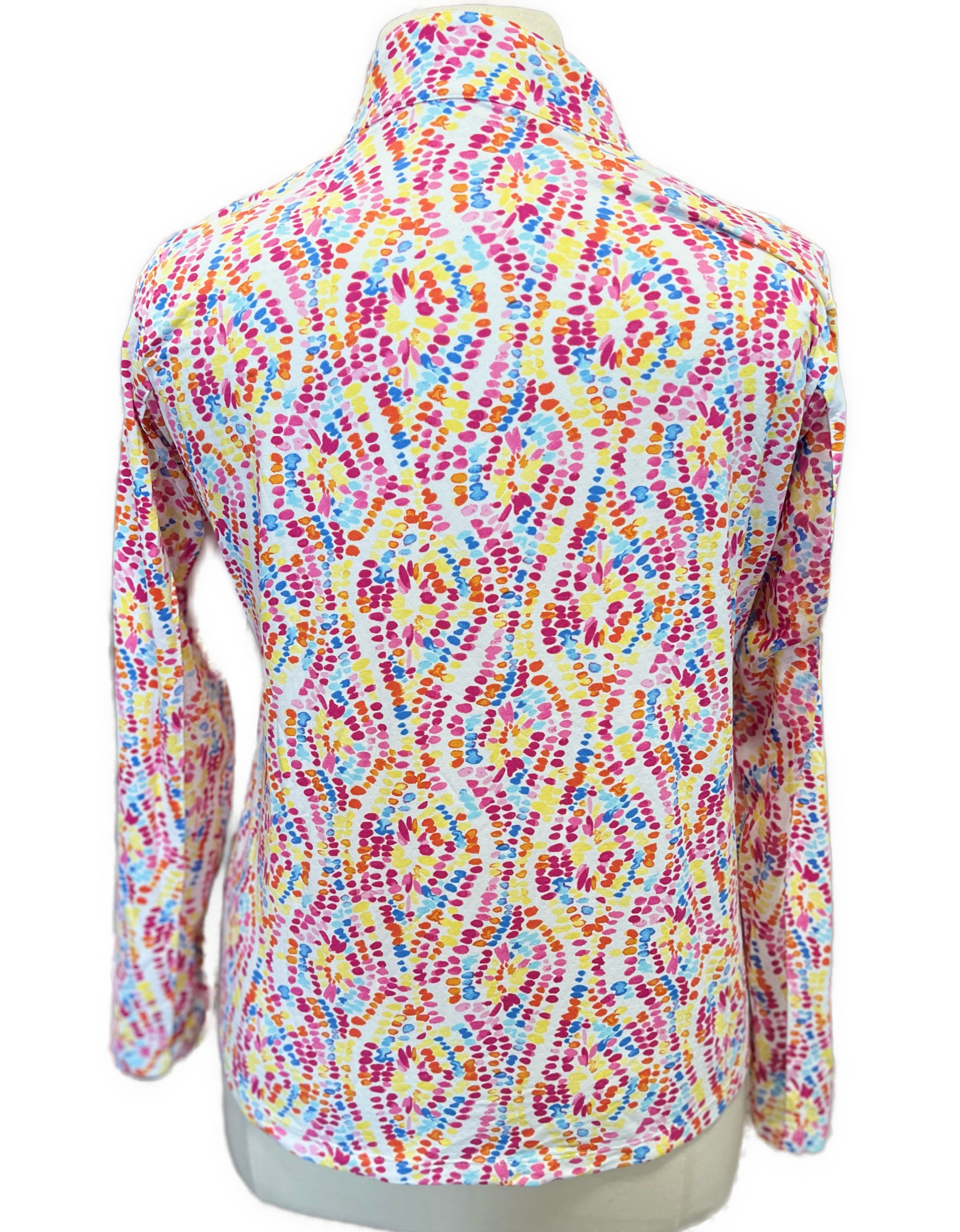Ibkul Women's Mondrian Multicolored Print Zip Mock Sun SHirt Size S MSP$100