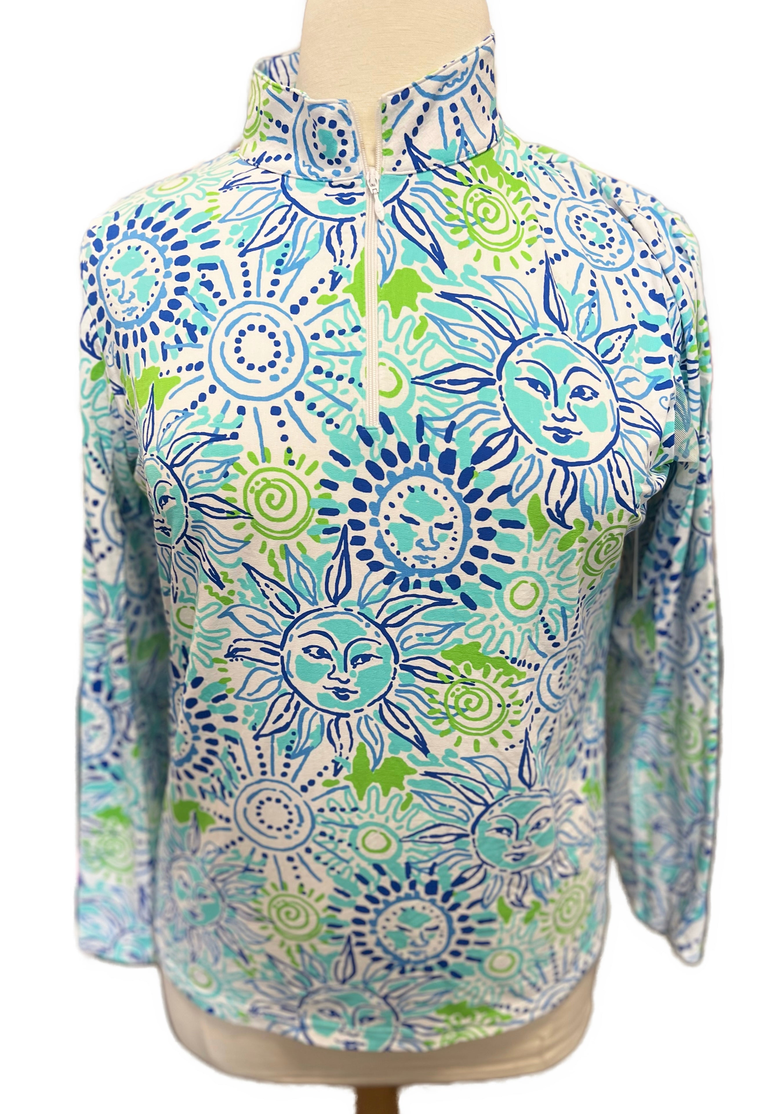 Ibkul Women's Blue Sea Print Long Sleeve Zip Mock Sun Shirt Size XL
