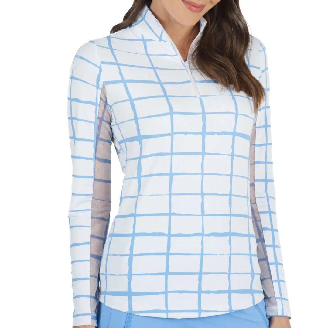 New Ibkul Long Sleeve Zip Mock Neck Cordova White/Peri Size XXL MSP $100