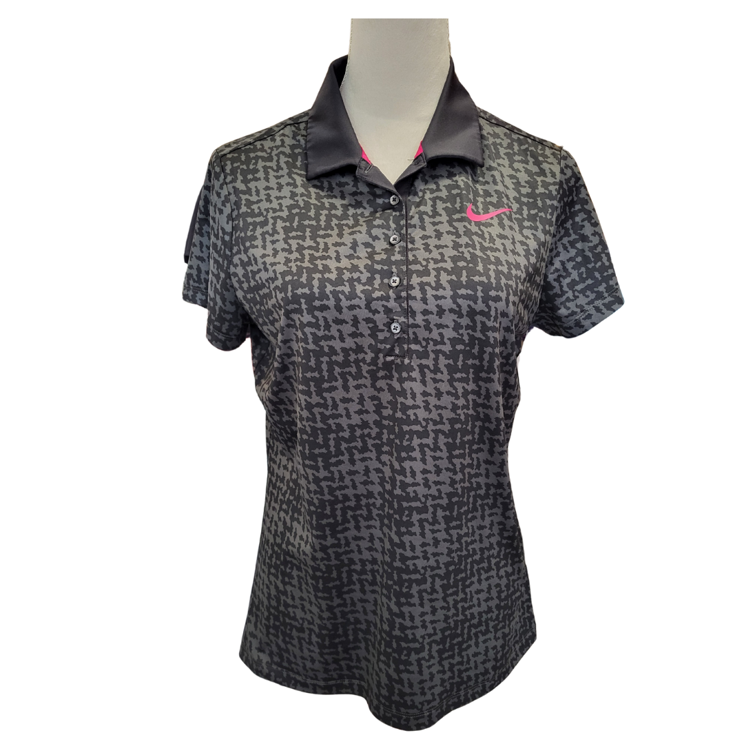 Nike Dri-Fit Diagonal Curved Dotted Black & White Sleeveless Polo Size M
