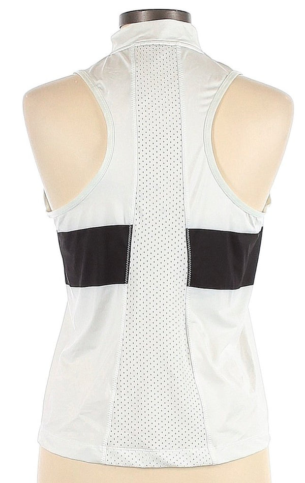 Description : Zip placket with blade collar Racerback style Mesh details Dri-Fit 84% Polyester 16% Spandex 23" length